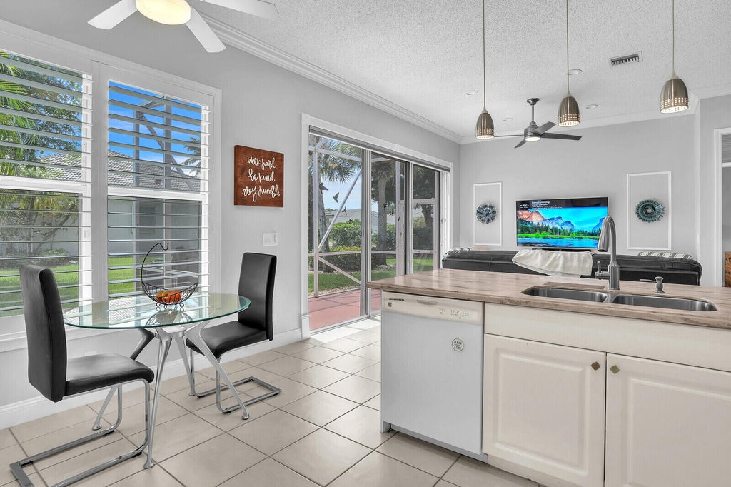 Discover comfort, connection, and community in this beautifully maintained 3-bed, 2-bath home in Brittany Lakes at Aberdeen Country Club (55+ section). Featuring a stylish & designed kitchen with stunning backsplash, custom drawers, updated cabinets, and private in-home laundry, this west facing residence offers effortless living. Aberdeen's world-class amenities include a Tom Fazio golf course, tennis, pickleball, a cutting-edge fitness and aquatic center, and three dining venues. Enjoy a vibrant social calendar, minutes from beaches, shopping, and places of worship. Live the country club lifestyle you've dreamed of--with some of the most accessible dues in South Florida. Mandatory Membership: Initial fee $80,500 + annual dues. Start your next chapter in unmatched style.