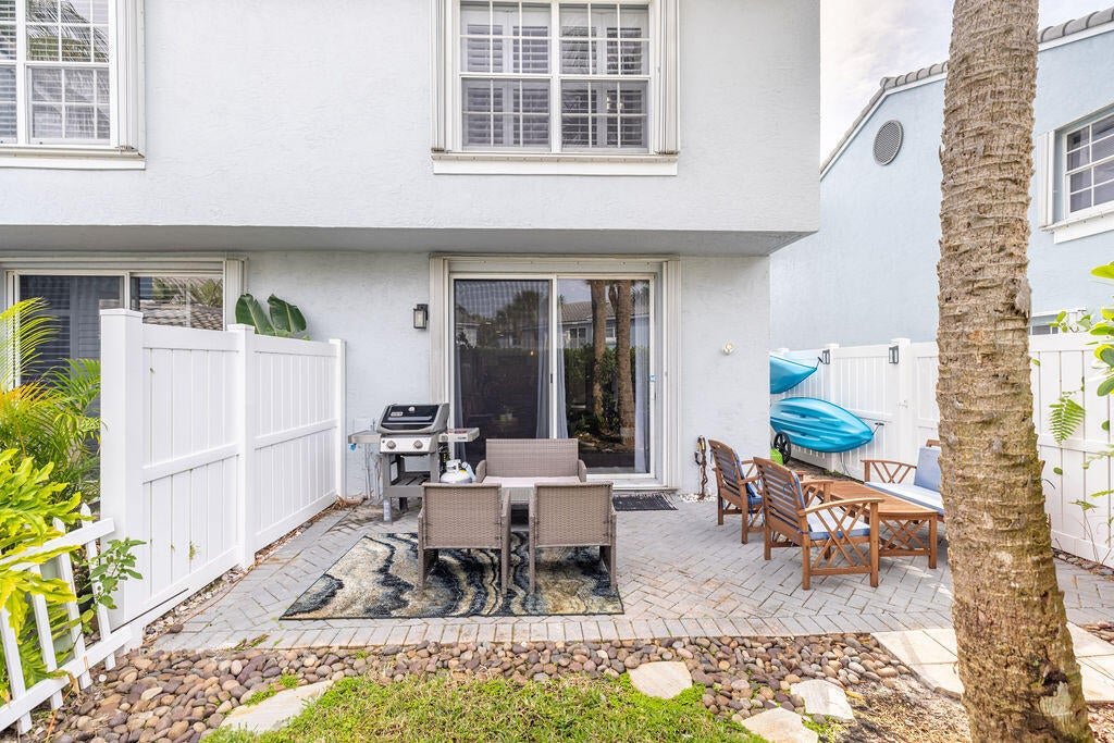 Seasonal Rental Gem! Beautifully renovated 3-bedroom, 2.5-bathroom townhome in Boca Quay. Exceptional community.East Boca. Best Location. Beautifully landscaped. Tasteful interior featuring newer appliances, soft-close drawers and cabinets, a stylish Carrara marble backsplash, quartzite countertops with an island perfect for ''kitchen gatherings'' and a built-out bar complete with a wine cooler & LED lit shelves! Tankless hot water heater. Upgraded electrical panel. Additional features: rollout pantry, engineered wood floors, and plantation shutters throughout. This corner unit has the best back yard in Boca Quay, pool views and side yard for your kayak! Appliances are all 2018 except fridge is 2023. A/C has UV.