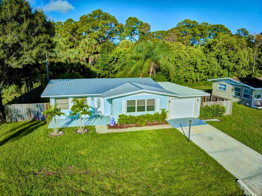 ANNUAL RENTAL AVAIL: BEAUTIFULLY UPDATED Vintage 3BR CBS home tucked in quiet neighborhood. 2025 HVAC! 2024 METAL ROOF! Light-filled living areas feature gray plank tile floor. 2022 Remodeled GOURMET EAT-IN KITCHEN w/2025 GE wall oven & 2019 SS Whirlpool appliances. LuxVinyl flrs in bedrms and stylish remodeled full Bathrm. EXT: Enjoy the inviting sideyard w/outdoor pit, shaded pavered & fenced backyard w/mango, banana & starfruit trees backing to peaceful woods. A/C'd Laundry & Storage rms, 1CarGar. NO HOA! LOC: MAINLAND --mins to shopping, golf, tennis, cafes & restaurants, theaters. Top medical care incl.Cleveland Clinic Hosp. +McKee Botanical Garden. ISLAND --beaches, boutiques, fine dining, galleries, oceanfront hotels, river, parks, VBMuseum. Coastal charm.. EAT, PLAY, LIVE VERO BEACH