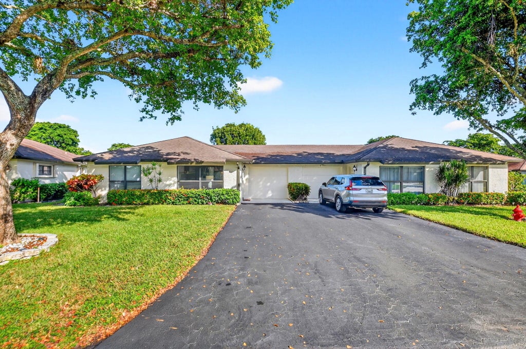 Discover easy South Florida living in this spacious 2-bed, 2-bath villa in the desirable 55+ Greentree Villas. Bright, open layout with large living area, updated kitchen, and enclosed Florida room perfect for relaxing or entertaining. Primary suite features walk-in closet and private bath. Enjoy a one-car garage, in-unit laundry, and tile flooring throughout. Community offers pools, clubhouses, and maintenance-free living with cable, water, and lawn care included. Minutes to shopping, dining, and beaches!